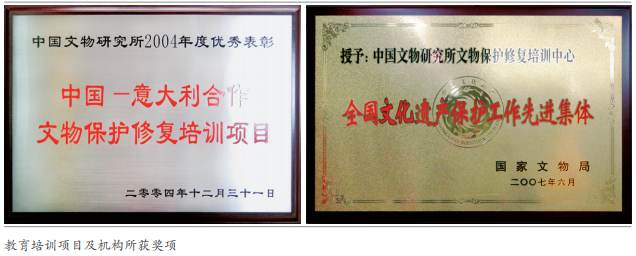 中国文化遗产研究院在国家文物局的大力支持下,依托中意两国政府联合实施的“中意合作支持北京中国文物研究所(现中国文化遗产研究院)文物保护修复培训项目”于2002年建立专门的培训机构——文物修复与培训中心(后简称“培训中心”)。该机构在我院整体学科布局和发展框架下,根据事业单位改革的要求,坚持“教学、科研、工程”相结合的指导思想,以教育培训为基本、科技研究为支撑、文物修复工程为主体组织开展各项工作,经过十余年的努力和发展,逐步形成了教育培训、修复工程、科技研究、出水文物保护、实验室运转、国际交流等基本协调发展的工作格局,为全国各级文物机构培养了数以千计的业务骨干,在培训制度建设、技术理念推广等方面都起着先驱作用,为我国的文化遗产保护修复事业做出应有的贡献。